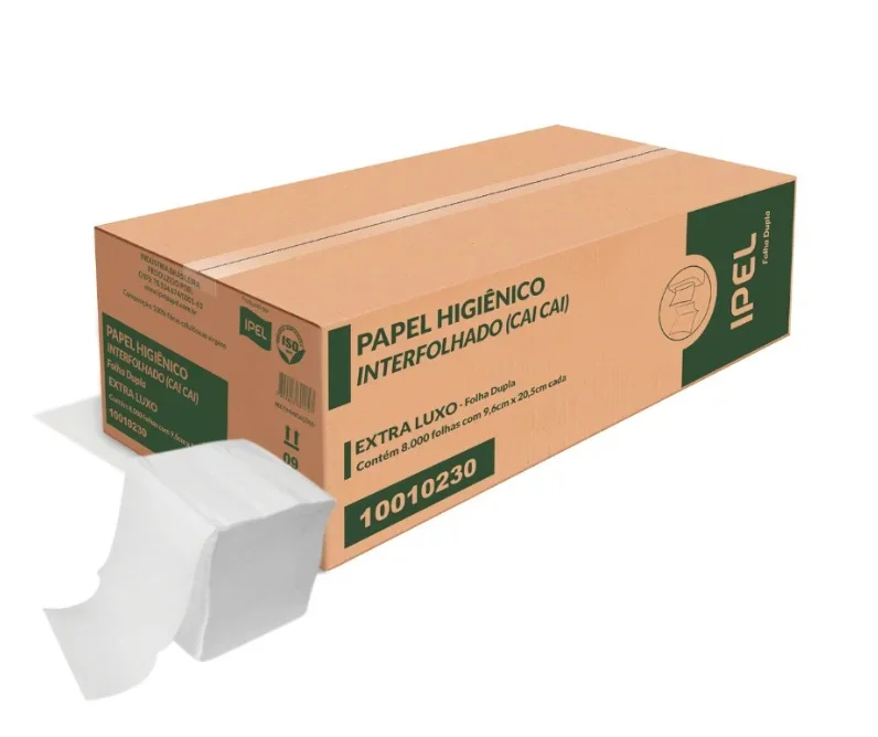 Papel higiênico interfolhado Indaial, maciez e altamente absorvente. Produzido com 100% de celulose extra virgem em processo totalmente automatizado